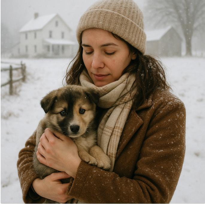 Le cœur battant la chamade, elle se précipita vers la maison. À l’intérieur, elle le sécha près du feu, l’enveloppa dans des serviettes et lui donna quelques gouttes de lait chaud. Le chiot gémit doucement, enfouissant son visage dans sa paume.